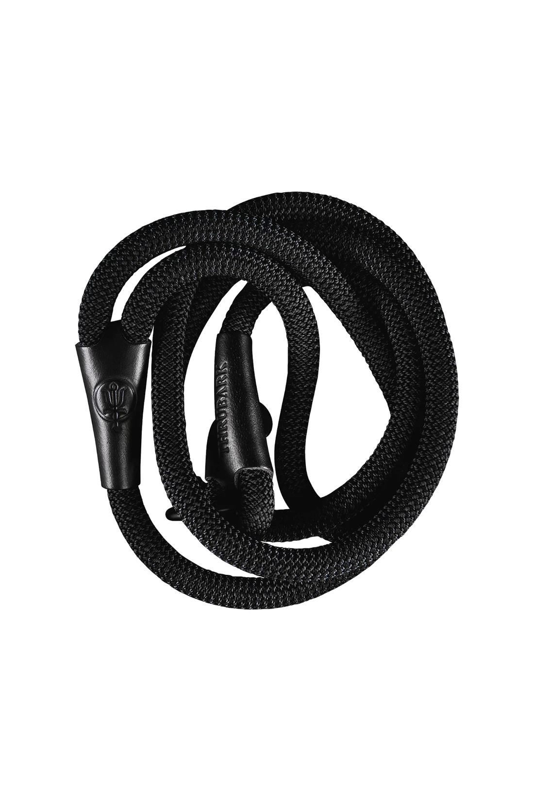 British black leather slip lead fashioned from 1.3 metre climbing rope secured with stitched leather wraps.