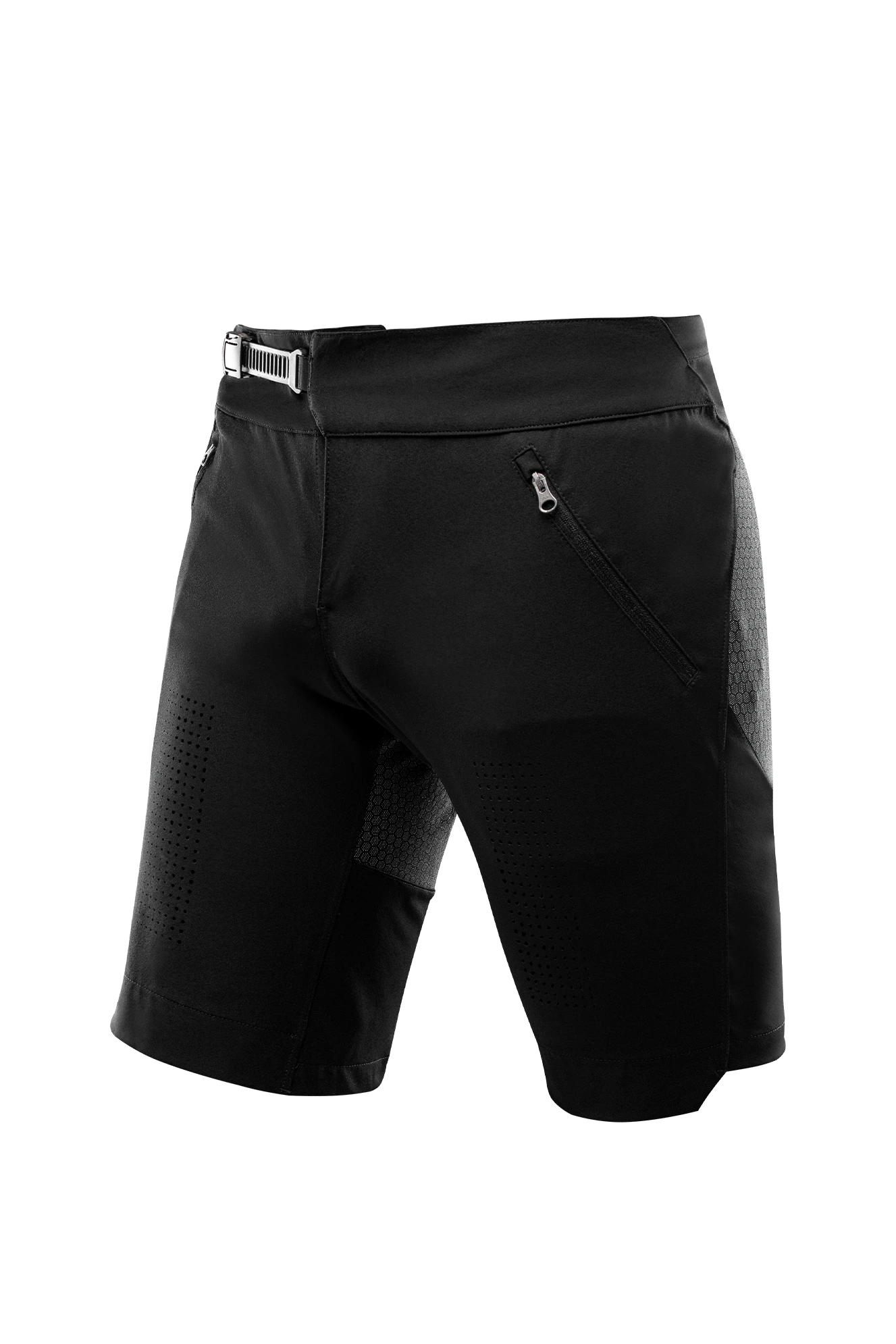 Hard wearing, stretch fabric shorts with laser cut ventilation designed for mountain biking. Constructed from a lightweight, comfortable, stretch fabric and reinforced with a composite blend of Dyneema® and Cordura® for added durability from scuffs and scrapes. Features also include slanted hip pockets for easy access whilst on the move, a ratchet belt for fast adjustment and reflective details for enhanced visibility in low light conditions.
