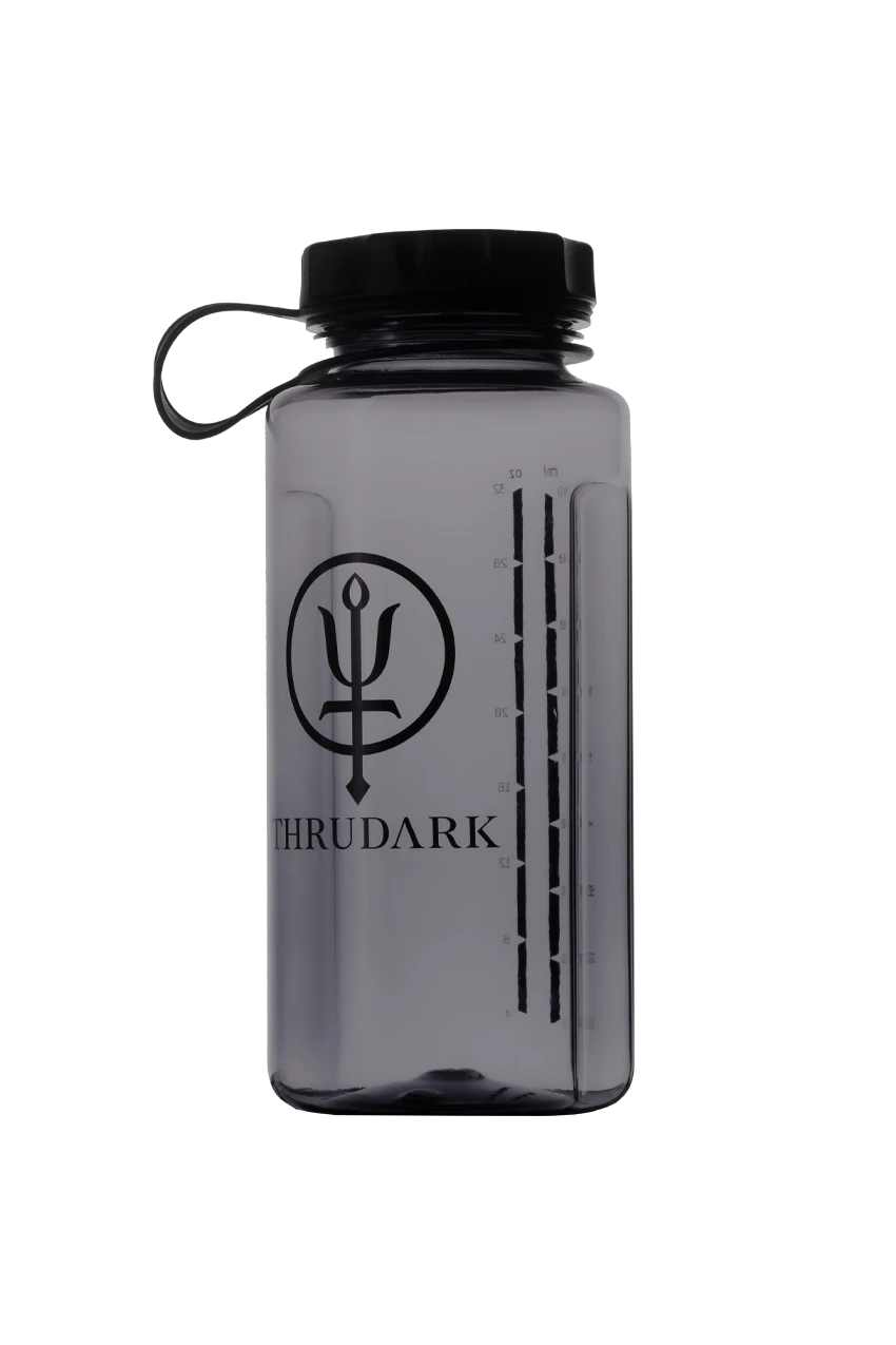1L capacity, reusable water bottle with signature ThruDark Insignia design. A lighter yet durable, BPA-free, plastic alternative to our existing stainless steel water bottle range. Featuring a wide mouth opening with simple screw top construction for minimal leakage.Â